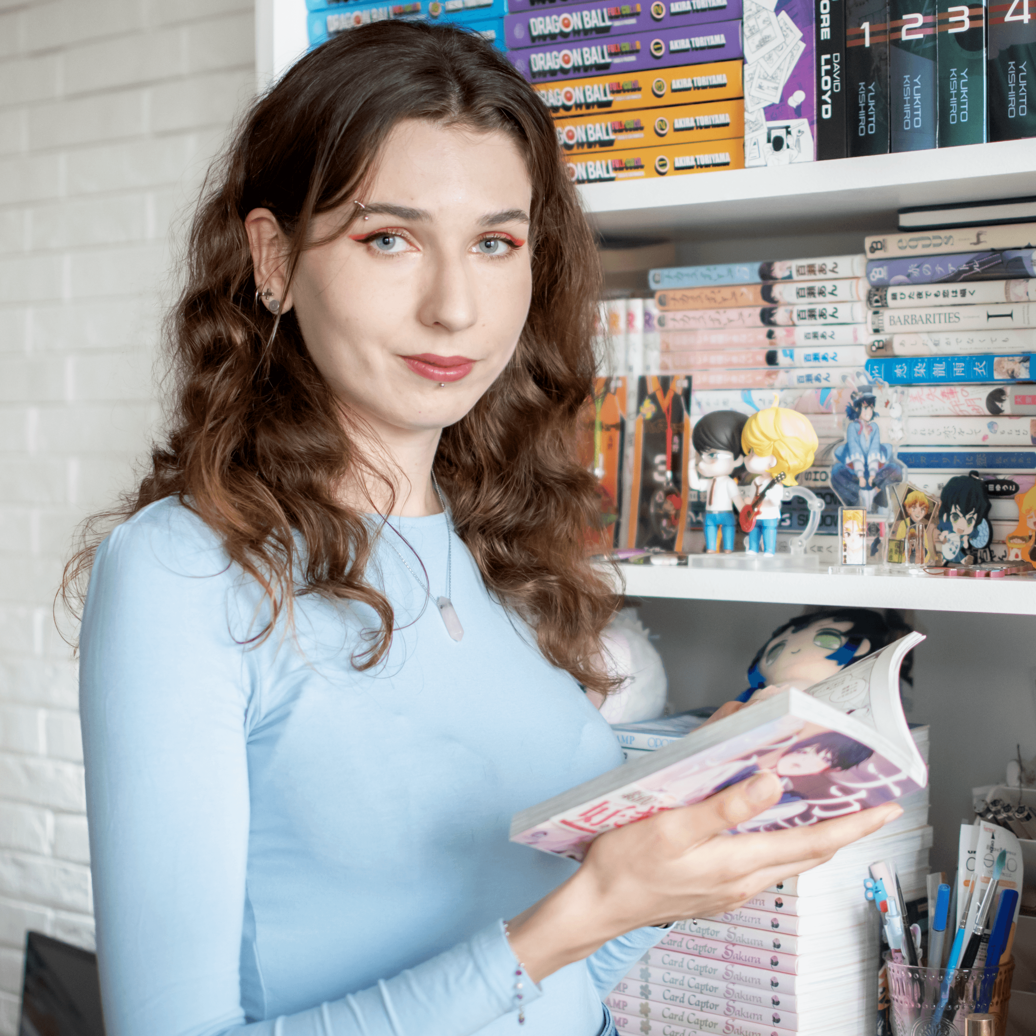 Moje zainteresowanie Japonią zaczęło się od anime i visual-kei, na studiach przeniosło się na teatr i literaturę, a ostatnio ponownie zwróciło się ku mangom i animacjom – tym razem czytanych i oglądanych w oryginale po japońsku.